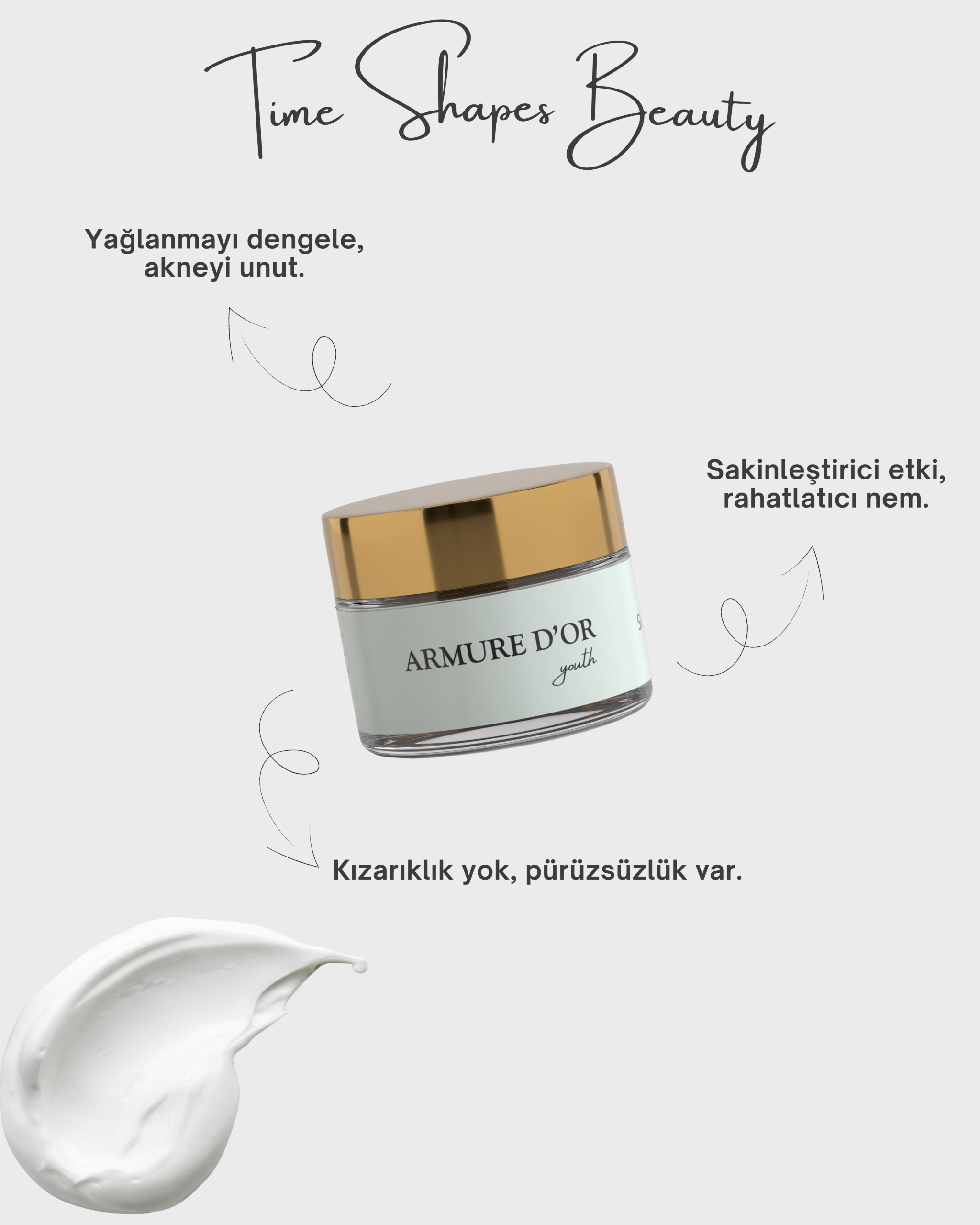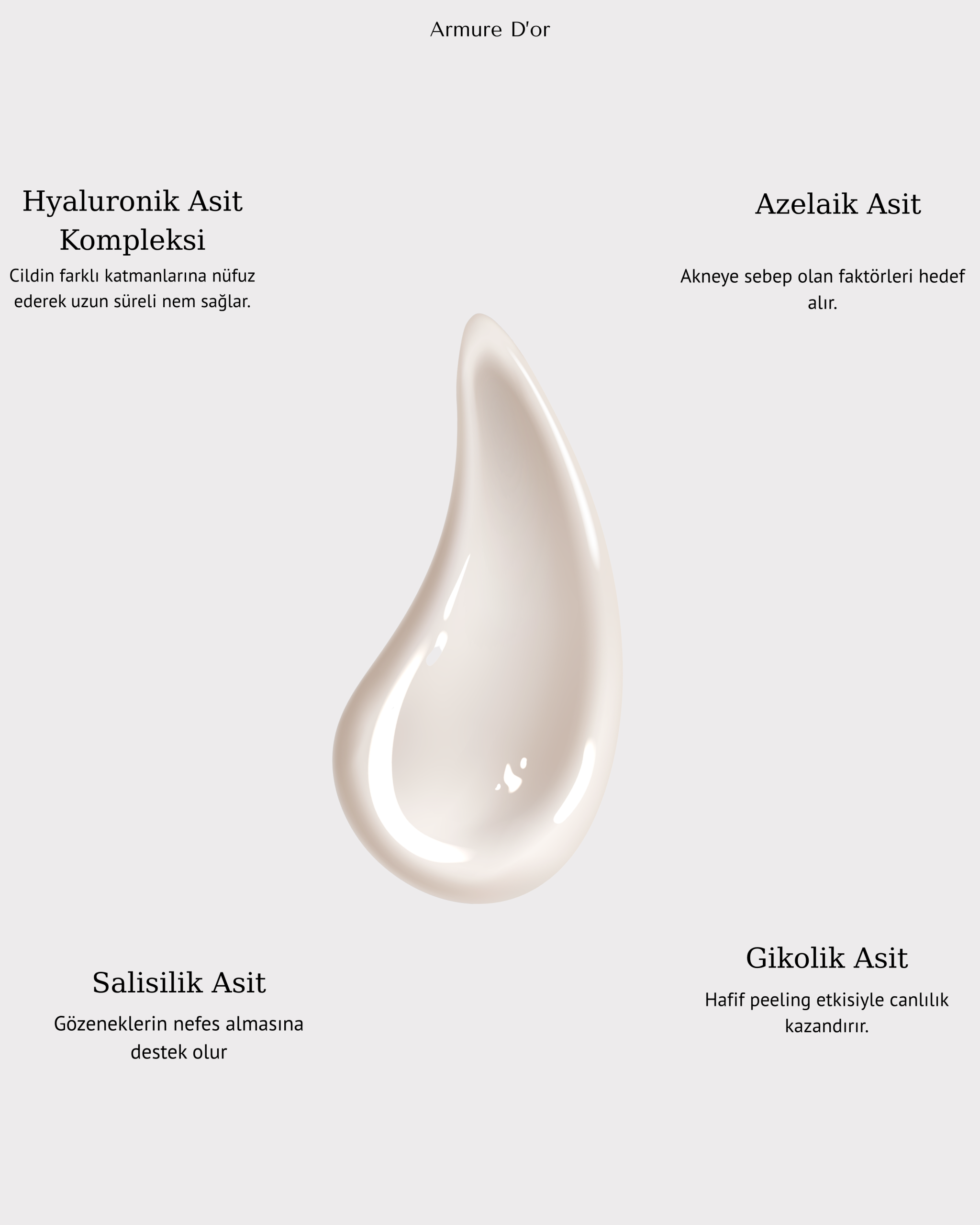 - Armure D’or Skin Calm Nemlendirici Krem, akneye yatkın vehassas ciltler için formüle edilmiş, dengeleyici etkili bir bakım kremidir.Cildi nemlendirirken gözenekleri tıkamadan bakım yapar; yatıştırıcı yapısıylakızarıklık ve iritasyonun hafifletilmesine destek olur.